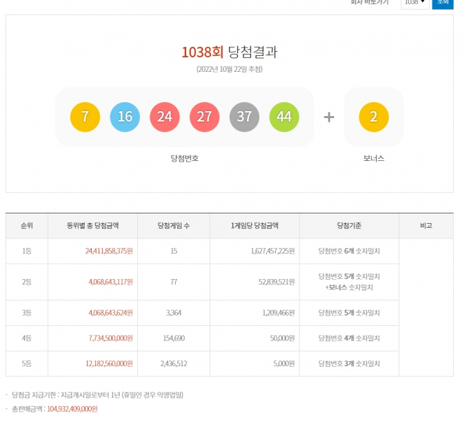 로또 1038회 예상번호 이번주는. 보너스 번호는 2번이다당첨번호 6개를 모두 맞힌 1등 당첨자는 15명으로 16. 로또1038회예상번호 로또1038회당첨번호 로또번호조합기 로또당첨번호분석 로또커뮤니티 로또기본상식 로또1038통계프로그램 등 제공.